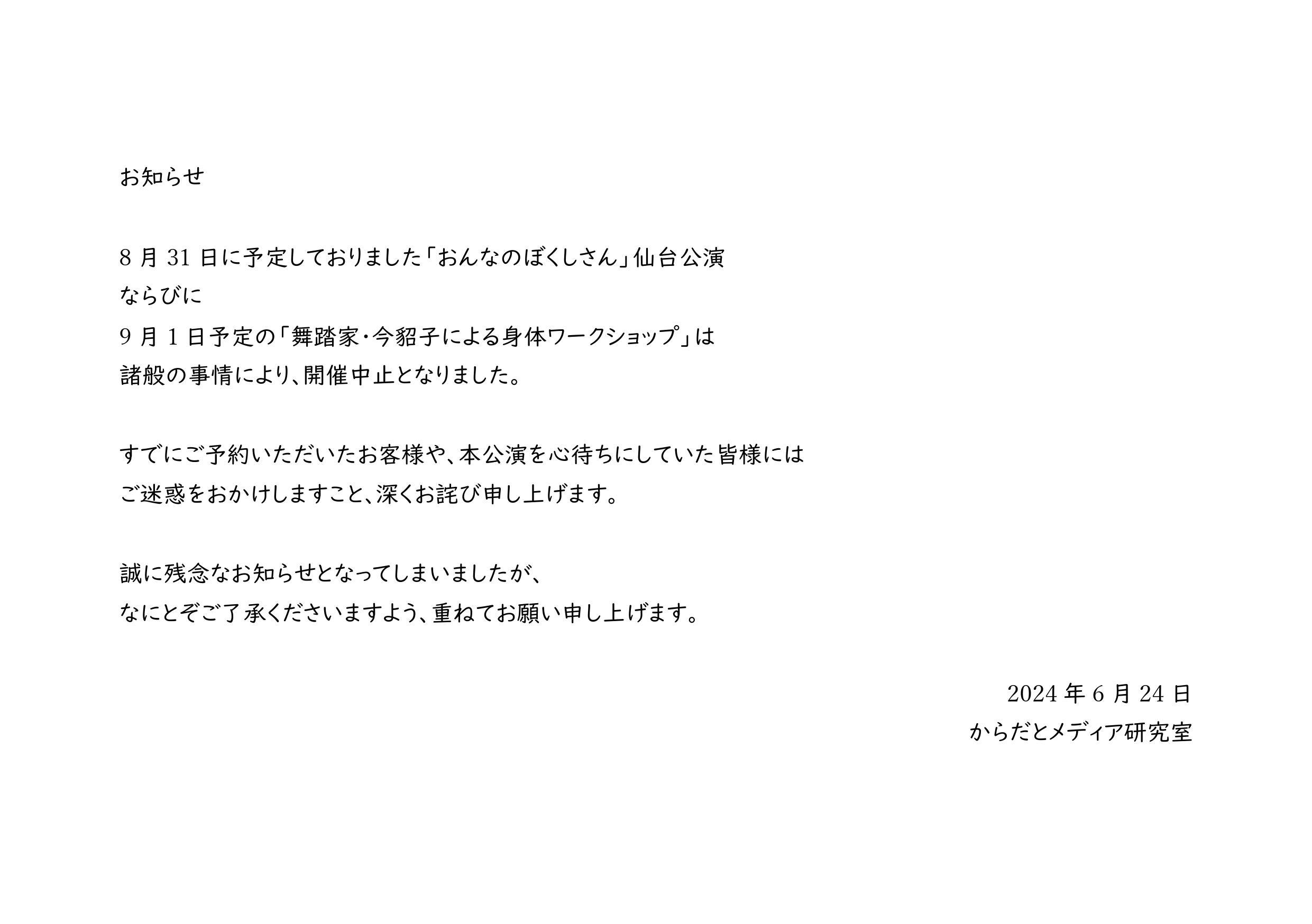 からだとメディア研究室初の招聘公演「おんなのぼくしさん」を記念して、