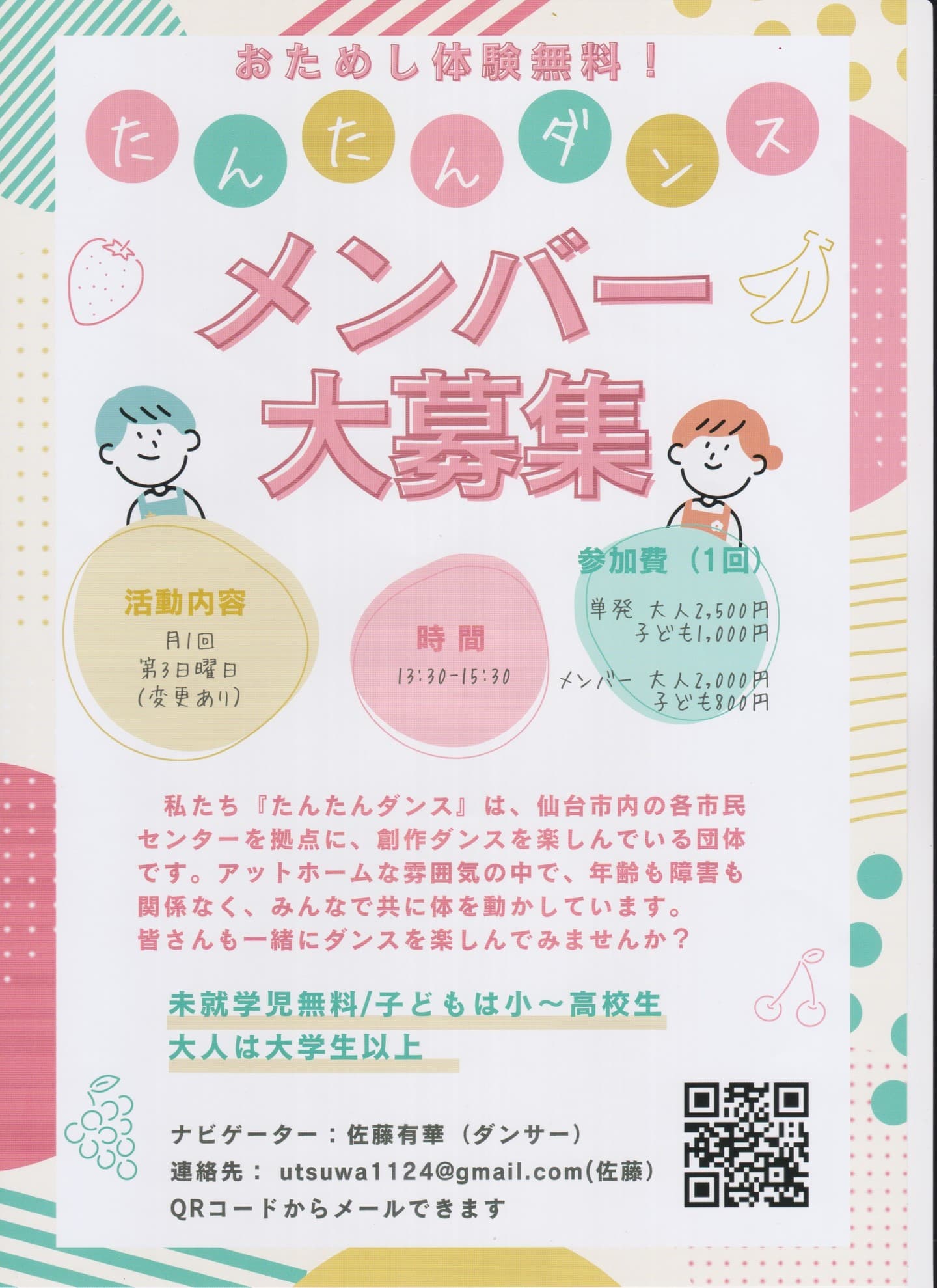 せんだいダンスプロジェクトをきっかけにサークル化したグループがあります。